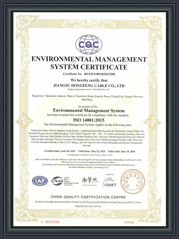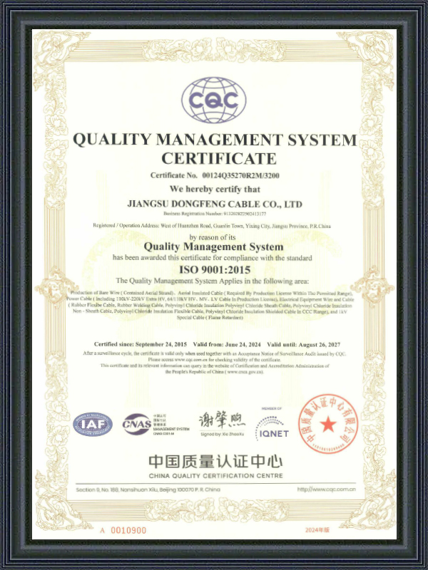 Jiangsu Dongfeng Cable Co., Ltd. ก่อตั้งขึ้นในปี 1988 ในฐานะ ประเทศจีน ผู้ผลิตสายไฟกำลังแรงดันสูงพิเศษ และ โรงงานสายไฟกำลังแรงดันสูง เป็นองค์กรเทคโนโลยีสูงระดับประเทศที่ผสานการวิจัยและพัฒนา การผลิต และการขายสายไฟและสายเคเบิลหลากหลายประเภท ได้รับการประเมินเป็น ‘โรงงานสีเขียวแห่งชาติ’, ‘องค์กรเฉพาะทาง นวัตกรรม และใหม่ของมณฑลเจียงซู’, ‘องค์กรคุณภาพและความซื่อสัตย์ของมณฑลเจียงซู’, ‘องค์กรเครดิตระดับ AAA’ และ ‘องค์กรที่ผู้ใช้พึงพอใจแห่งชาติ’ เรามีบริการ สายไฟกำลัง XLPE 66-500 kV แบบสั่งทำ.